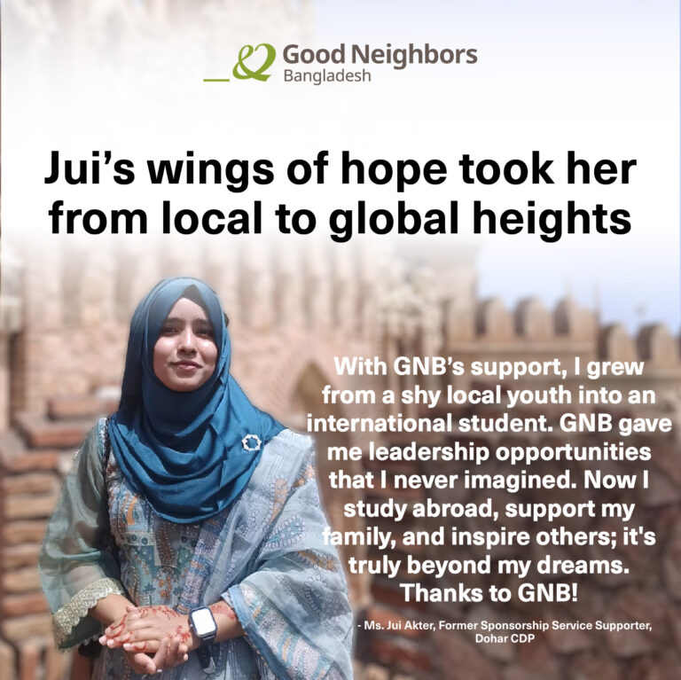 News Jui’s wings of hope took her from local to global heights: A former community supporter of GNB Dohar CDP September 23, 2025 by GN Bangla
